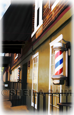 A digital watercolor of a downtown street sporting two barber shop poles.  My memories go back to a time when these poles could be seen on many, many streets.  Now they seem to be a rarity – another victim of our ‘modern’ times.  Shot with a Canon Powershot Pro 1 camera in Parkersburg, WV.