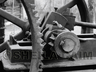 Massive metal parts form one of the pieces of equipment used in the oil fields in the heyday of gas and oil exploration in the Appalachians.  This memory from the past reminds us of a time now lost in our modern age of technology.  Shot with a Canon Powershot Pro 1 camera.